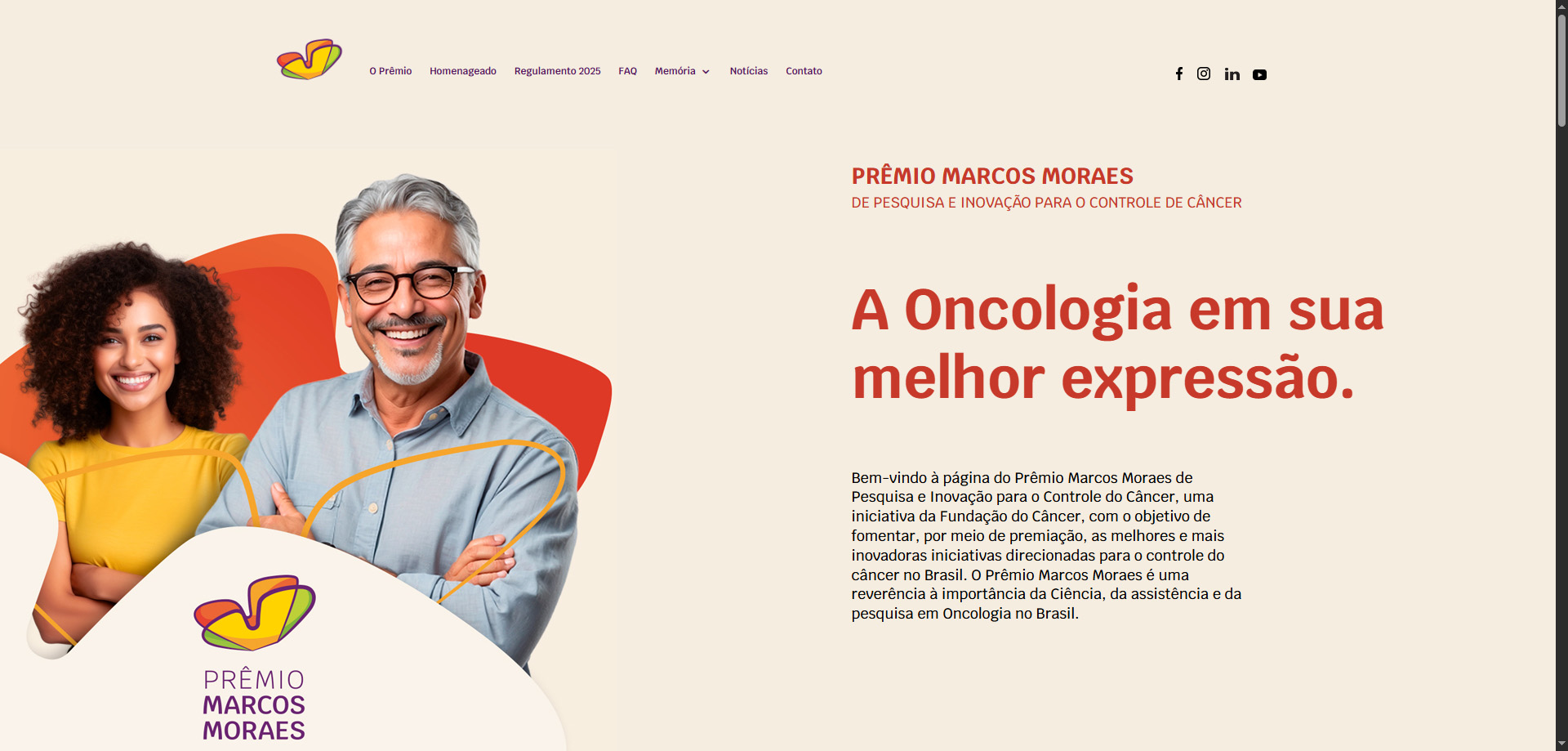 Para representar a história vitoriosa do homenageado no campo da oncologia e saúde, nosso setor de Design usou como elemento de inspiração a figura da borboleta para criar a marca do Prêmio, simbolizando a transformação e a renovação, objetivos da Fundação com essa premiação.